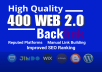 Do you want to improve your websites search engine rankings and gain a competitive edge I offer 400 highquality Web 2.0 backlinks to strengthen your sites authority and o...